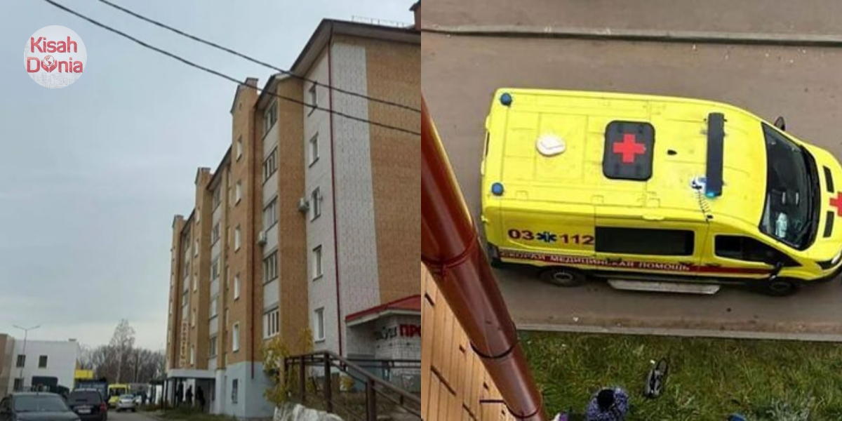 Kakak campak adik dari tingkap bangunan perumahan tingkat 4